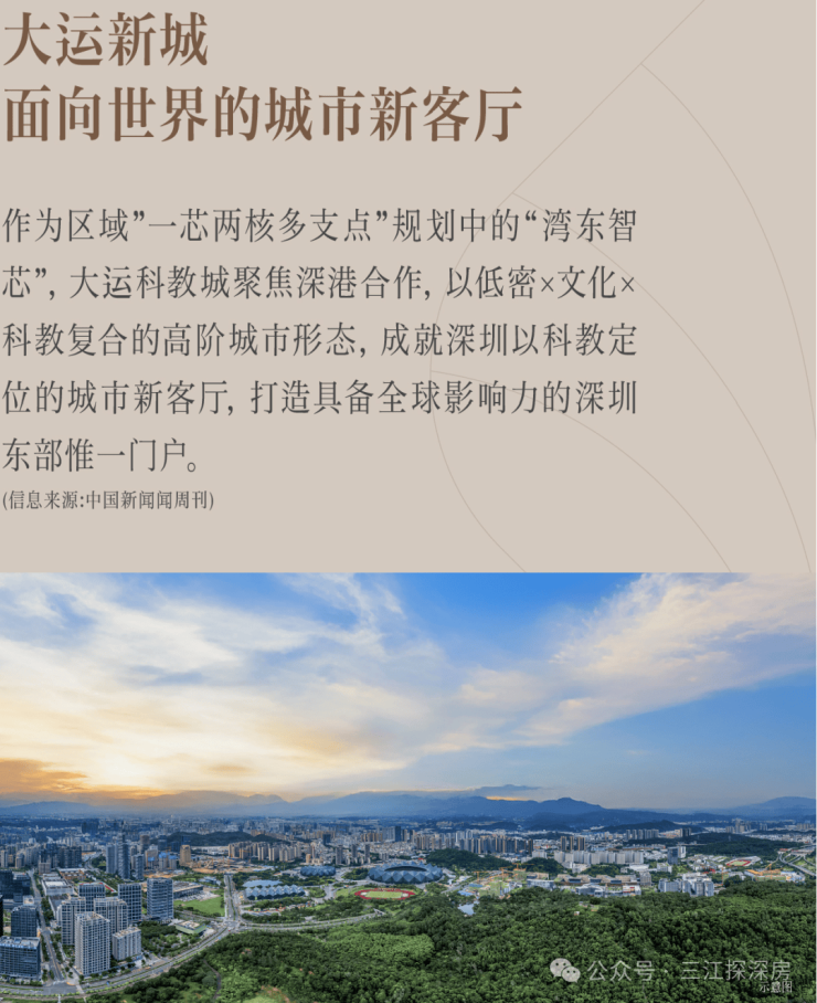 大运新城是深圳17个重点发展区域之一,政府在此投入了2433亿。2018年定位升级后,大运新城被列为五大城市新客厅之一,整个东部仅此一个。