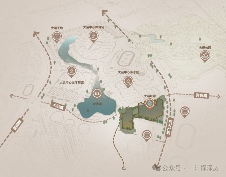 大运中心拥有深圳最大体育场,一场两馆可同时容纳约8.1万观众,具备国际田联(IAAF)、国际泳联(FINA)等最高标准认证的专业场馆设计,是国际赛事与超大型演出的首选。项目头排对望大运中心,,近享家门口的世界盛会。(信息来源:龙岗区文化广电旅游体育局官网)