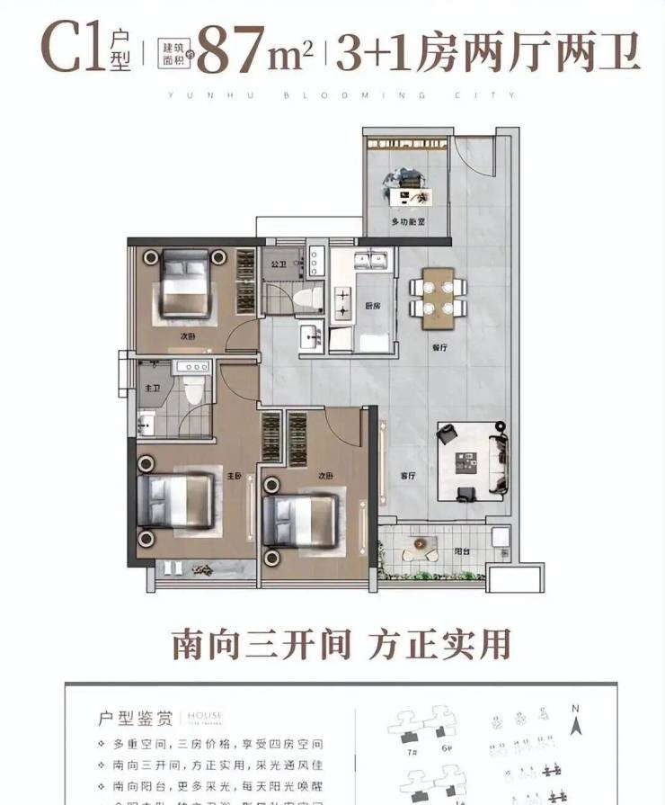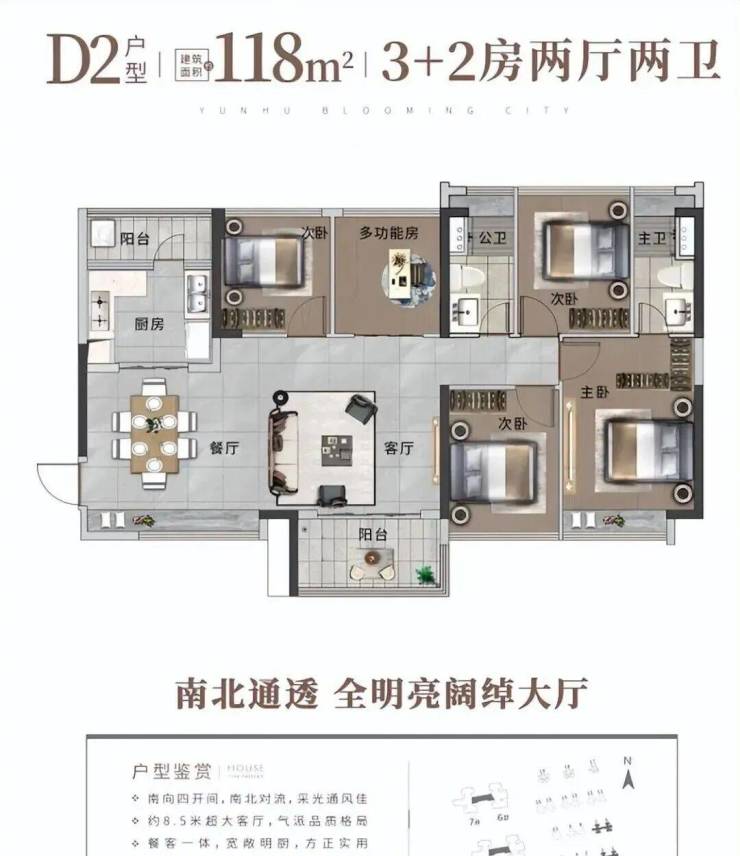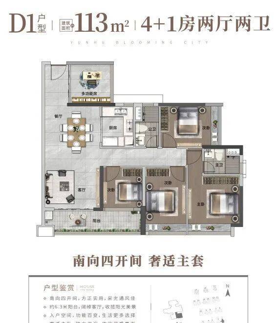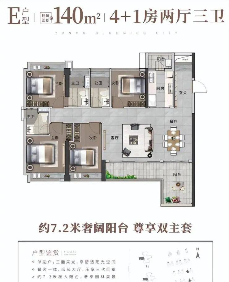 高性价比的全龄段人居N+1户型,户型涵盖约70-140㎡三-六房。