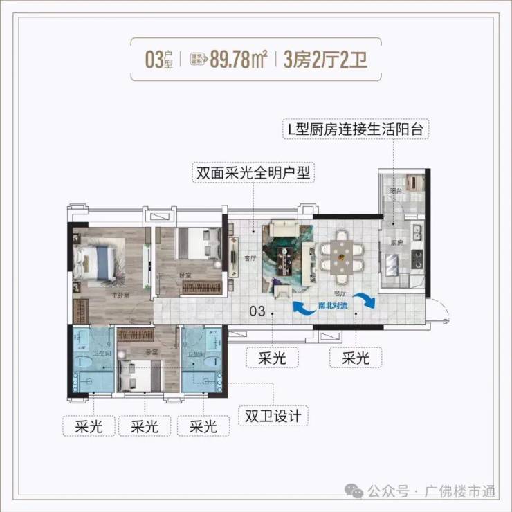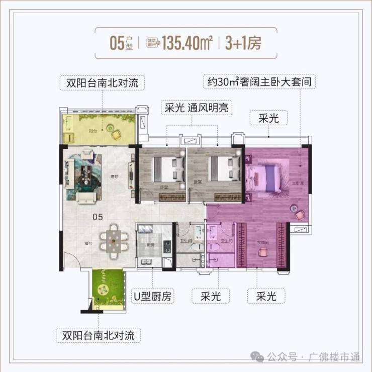 约30平方宽奢主卧大套间,南北对流,畅享品奢生活