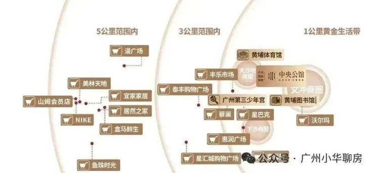 周边有三大成熟商圈环绕,即享惠润广场、沃尔玛等商业配套,5公里范围内就能到三溪美林天地、保利鱼珠时光、山姆会员店、居然之家、M-PARK漫广场等大型商业配套