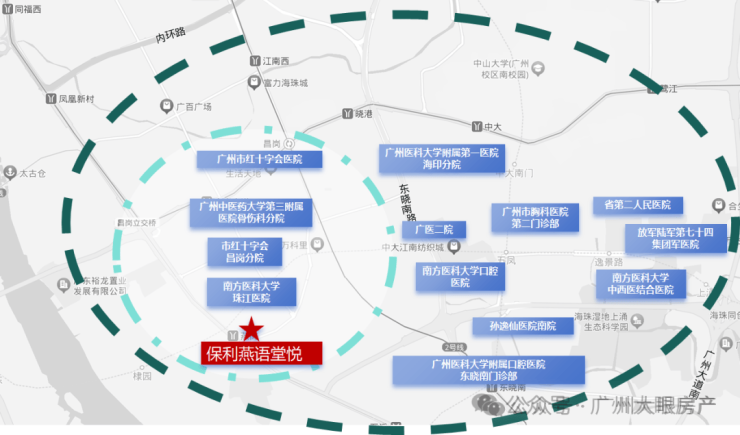 步行约500m可达珠江医院(全国首批三甲)、300m广医二院(西院区)、南石头社区服务中心;周边3公里内广州红十字会医院、妇幼保健院(二甲)、省口腔医院(三甲)、中山孙逸仙医院南院、广中医骨伤科医院等医疗体系,24H为健康护航。