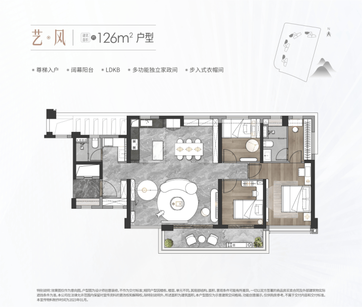 在售户型:建面约126-170m² 3+1房至4房
