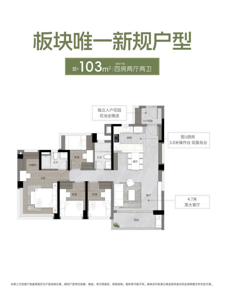 本宣传资料仅为项目信息公示用途,不构成《商品房买卖合同》的要约或承诺。宣传内容中涉及的项目规划、周边配套、政府规划、商业资源、教育资源、交通配套、户型面积等相关信息,最终均以政府相关部门审批文件及项目实际交付情况为准;