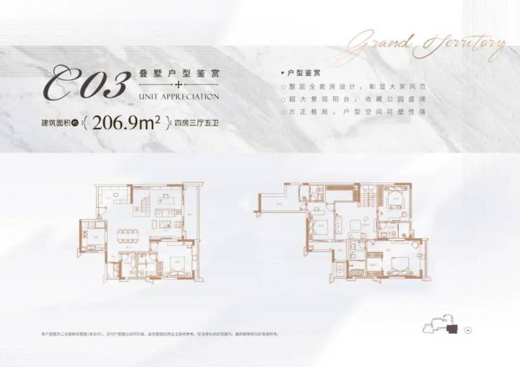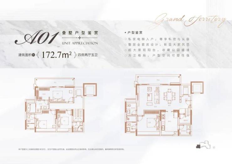 设计亮点:私家电梯入户、全屋套房布局、6米宽景观阳台,实现“有天有地有花园”的居住体验。