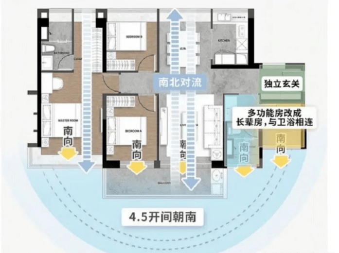 整体价值:约26㎡南北对流主卧套房+金融岛唯一阳光玄关+4.5开间朝南+可改双套间