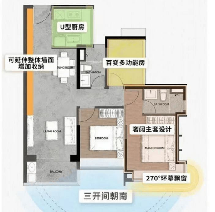 整体价值:7.6m³整墙收纳+南向户型+5㎡全景厨房+270°景观主卧套间