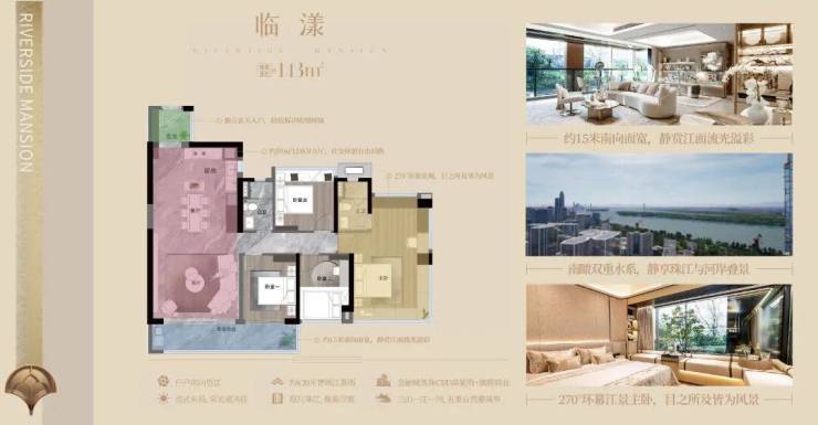 产品迭代期,打磨改善质感。项目迭代出130-180㎡江景大平层,涵盖多元改善户型,首推6#、7#、3梯3户/3梯4户设计,确保圈层纯粹性[1][3]。特邀梁志天设计集团等四大国际设计天团操刀,全南向望江布局,130㎡刚需改善四房、180㎡终极改善四房,超高使用率达120%以上,搭配全景景观阳台,无遮挡俯瞰630米江景[1][2][3]。