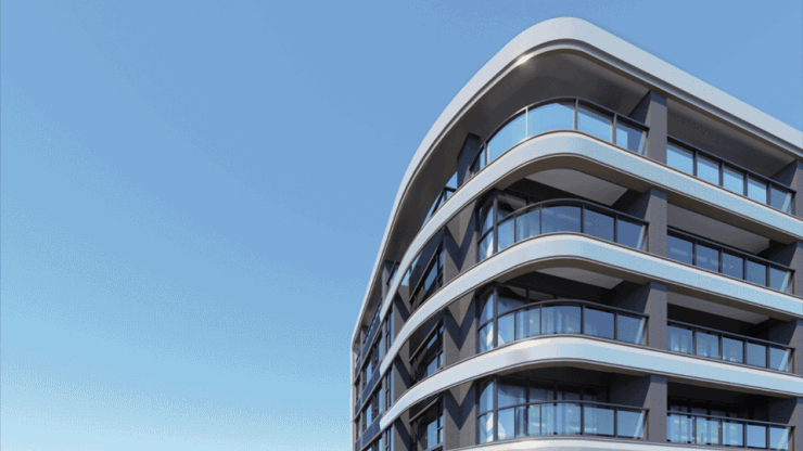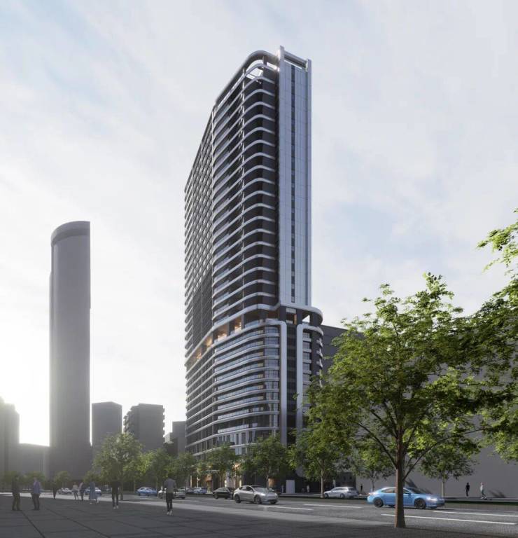 全圆弧形转角搭配层次丰富的立面线条,形成一抹轻盈明快的亮色ICON,如阳光照耀,亦如月光披拂。