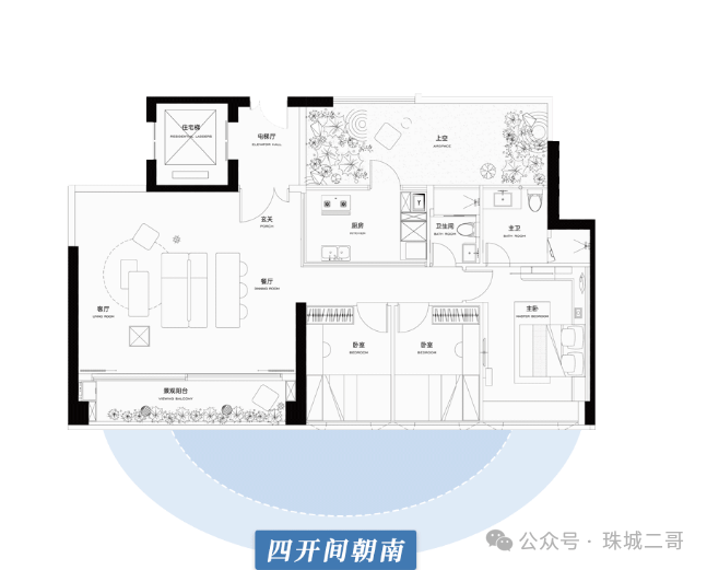 建面约135㎡舒居四房,在不超豪宅线的基础上,尺度却不输200平户型。