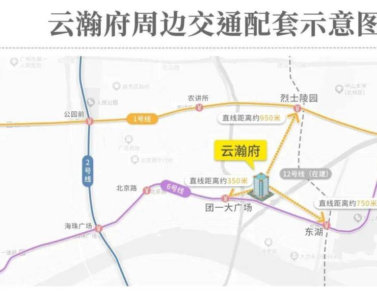约350米,就是地铁6号线团一大广场站,1站北京路、6站珠江新城,你的生活半径,延伸至全城。