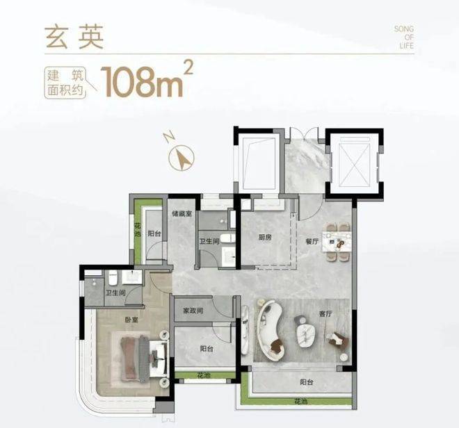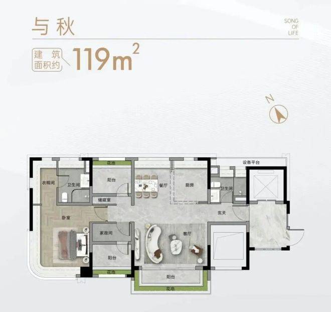 这些户型设计新颖,注重实用性和舒适性,所有户型均为全南向布局,保证充足的自然采光和通风效果。