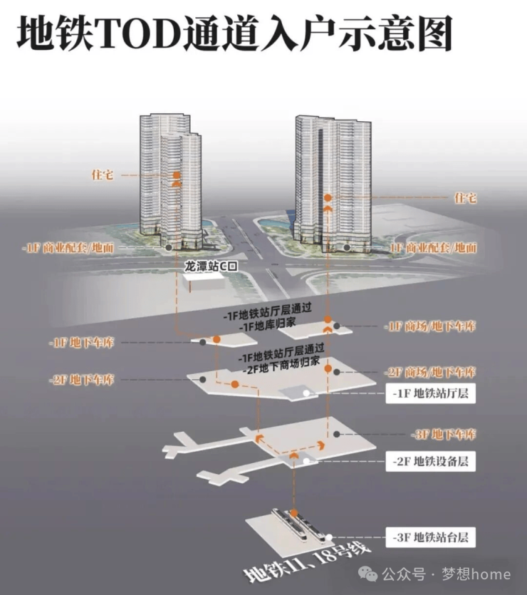 项目是TOD社区,不止连通地铁站台,还会利用裙房、架空层等,打造空中花园、商业体,自成微型“垂直城市”