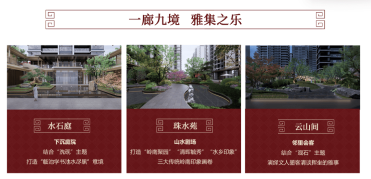 承袭中华千年造园技艺,集萃岭南山水精华,糅合广府文化,融汇艺术画卷,匠造新中式大雅园境。