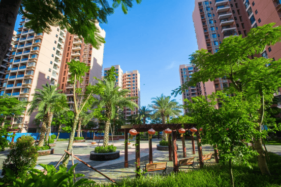 阳光下,树影与花草交融,与邻里知己相约休闲廊亭,品茗谈笑,在不经意间收获自然里的愉悦时光;饭后一家人在园林里散步,在鸟语花香中乐享温情时光。