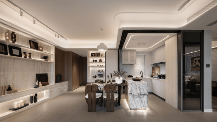 区别于以往用墙体划分功能区的方式,项目近38m²LDKG方厅,还可进一步改造X空间,达到最大60m²的宴会级开间。