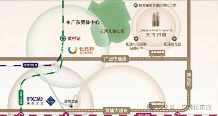 自驾依靠着广园快速路、黄埔大道的天然交通优势,出行便捷畅通,能快速到达金融城、珠江新城,配合未来交通路网的改善,板块的对外联通性将持续增强,不仅能带来更好的出行体验,也为板块价值的提升奠定了基础。