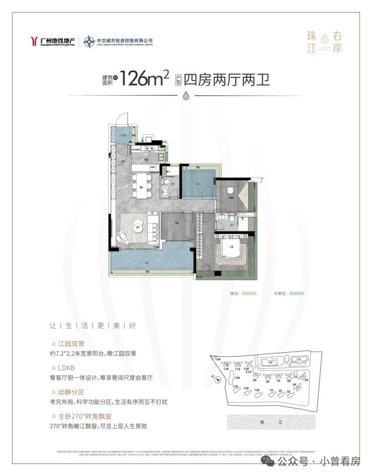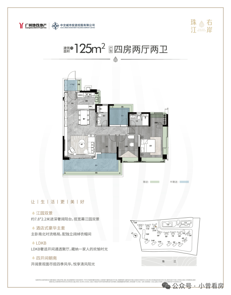 四开间朝南,主卧还采用南北对流设计,观景阳台长达近8米……
