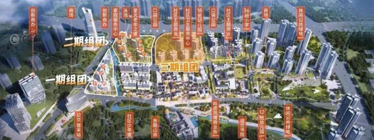三期,也就是【玖璋组团】,三期组团位于二期组团东侧,离地铁稍微远一点,距离7号线板桥站大约700米,但离中心商业街和学校要近一些。