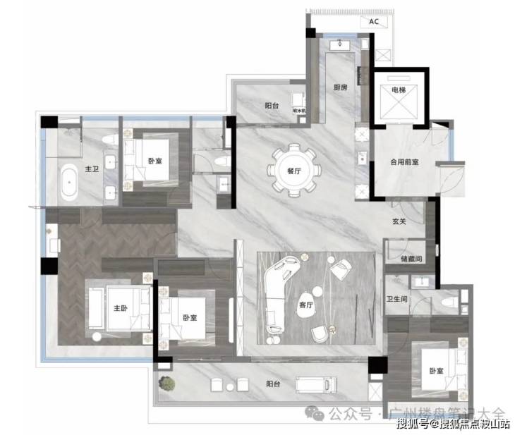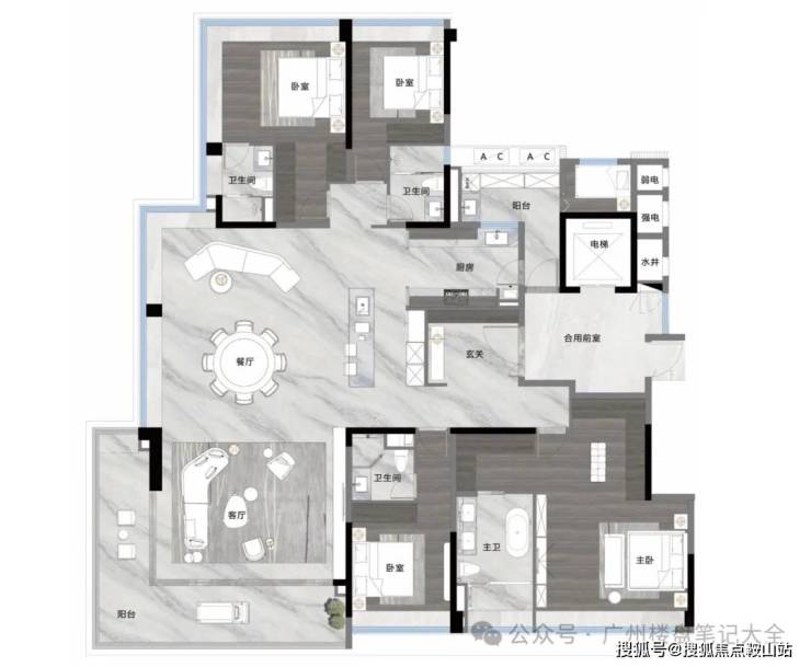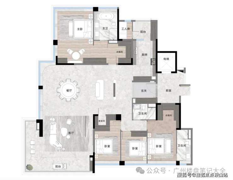 ——全套房设计·122㎡定制化社交巨厅·双归家动线·15米270°转角阳台