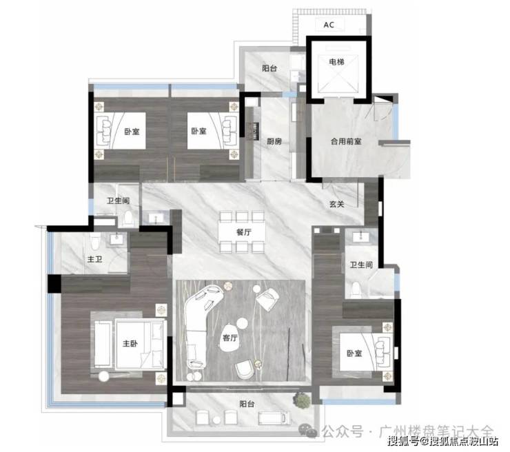 ——板式专梯入户·双主套双阳台配置·44㎡社交大方厅