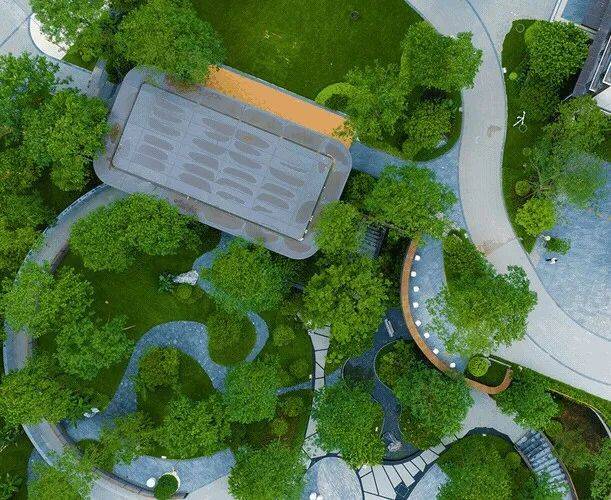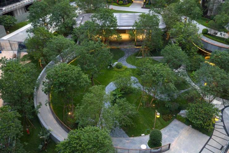 天河源筑不同,它选择用一个节点集中拆解,就如下图,项目凭借地势,打造了一座双层立体花园,手法大胆而新颖。