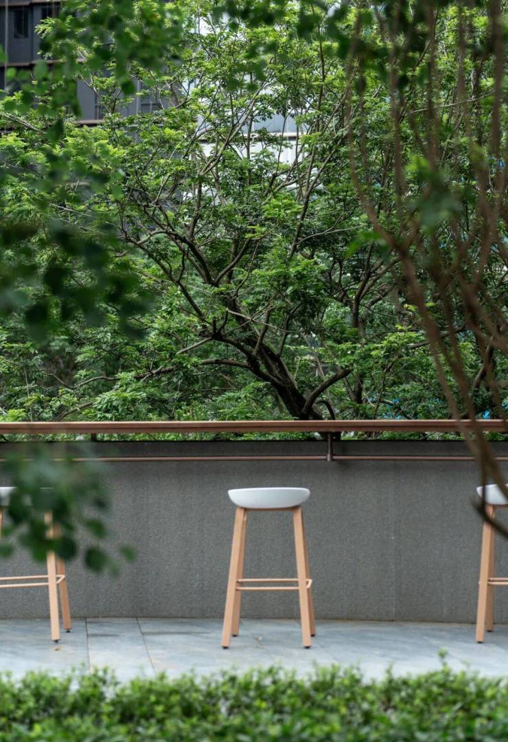 两侧弧坡与阶梯的环抱,让空间有了“包裹感”,在这里停驻,观景,你会获得难以言喻的松弛。