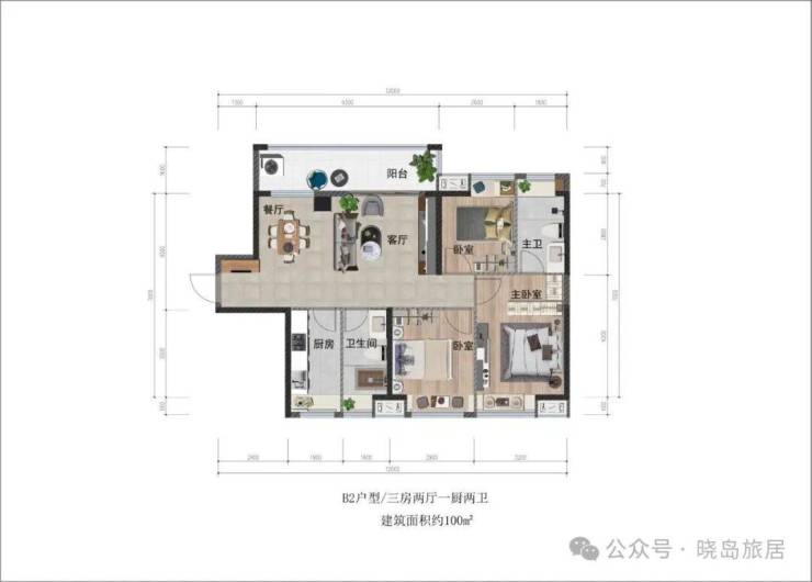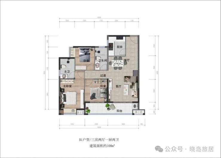 100㎡;三房两厅两卫