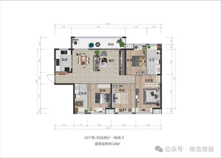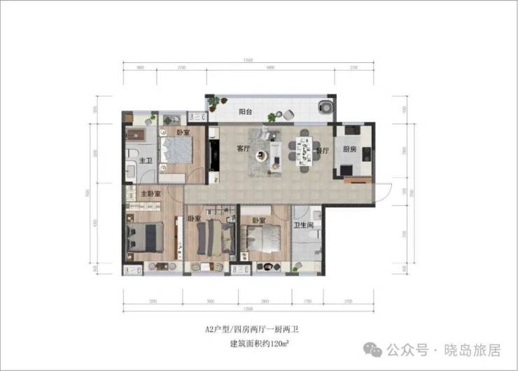 120㎡:四房两厅两卫