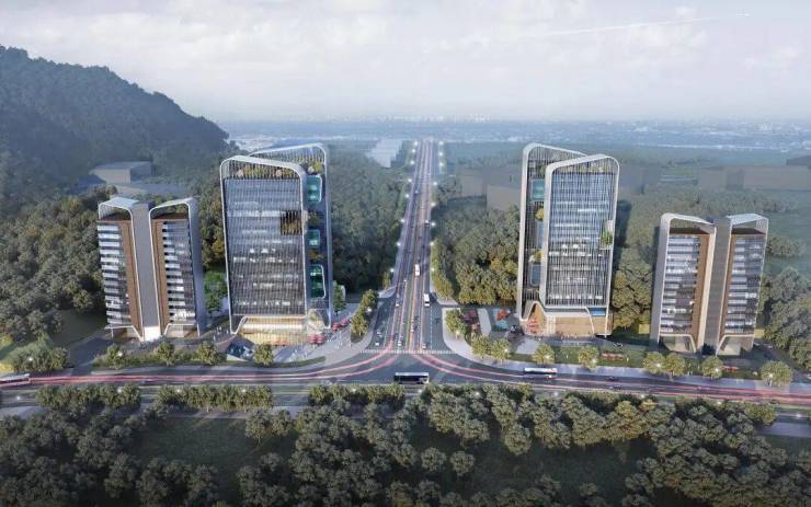 合景臻玥广场项目占地约38328.5㎡,总规划建筑面积约199489.27㎡,由2栋自持运营的标办写字楼,3栋可出售标准办公楼,10栋1088~1921㎡的花园式总部可售小独栋,以及自持运营的商业配套及1栋展示中心组成。