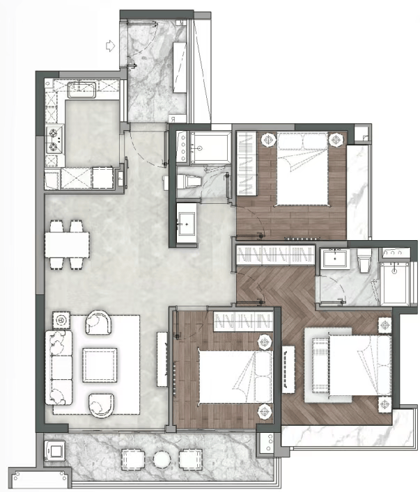 140㎡ 3+1房两厅两卫(A5-04&05):灵活多功能房可作书房、儿童房或客房,空间利用率高。