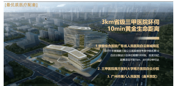 医疗:3公里范围内汇聚多家三甲医院,包括广东省人民医院(白云新城院区)、南方医科大学南方医院、市八医院(嘉禾院区),健康保障无忧。