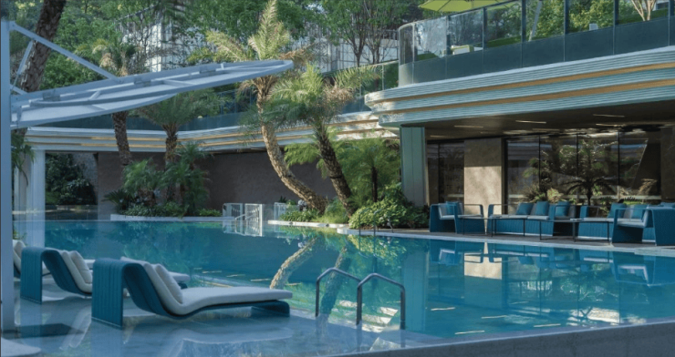 于是,9米高酒店式大堂、双泳池会所、五星酒店级环岛落客...