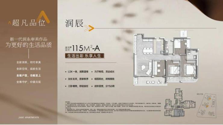 建面115平四房两卫,这个户型从玄关、客餐厅、主卧都做到了南北对流,另外还算五开间朝南,无论客厅还算主次卧,光线都非常好