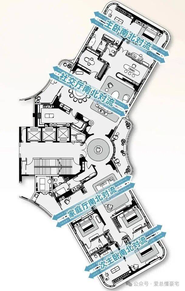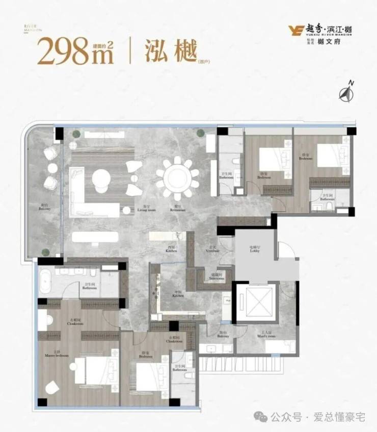 缦云的315㎡五房四卫户型,南北双阳台、巨幕大宽厅、独立保姆房、高定双套房,还享私家电梯厅。