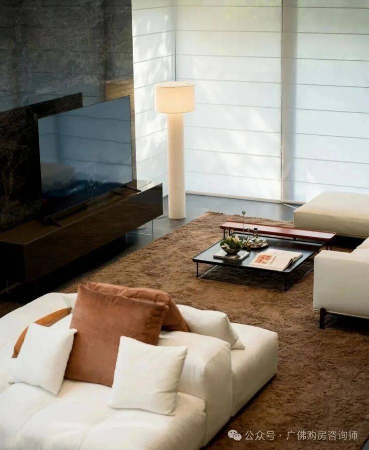 全幅落地玻璃串联山色,270°瞰景界面与窗外绿意虚实相映,如同画轴慢慢展开。空间与艺术在此完美融合,共同缔造奢华而雅致的生活美学。Poliform组合沙发以其简约而典雅的设计风范,lago艺术背景柜的巧妙点缀,更为这方天地增添一抹独特的艺术气息。