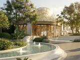 四重・中央会客厅:宽约 31 米双层立体叠合,高低叠水 + 阳光草坪,设休憩桌椅,适合业主会客、品茗;