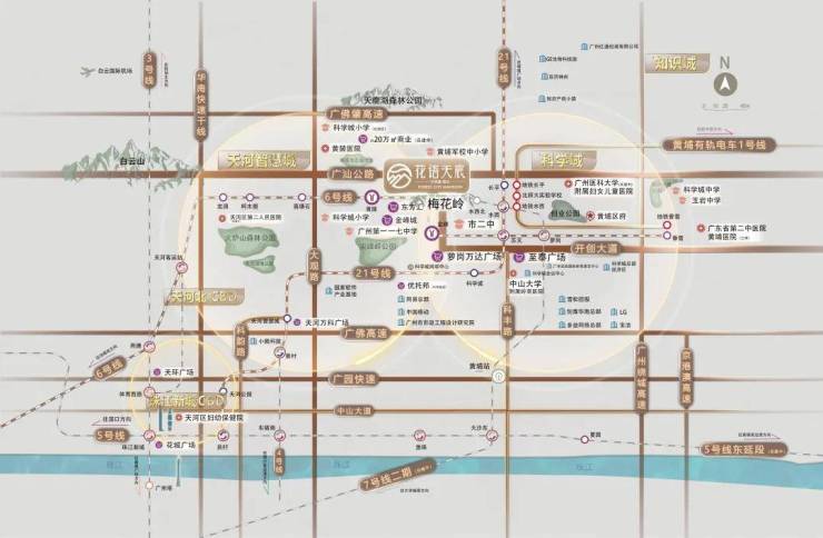 项目位于广州第三发展中轴线“科技创新轴”,天河智慧城和黄埔科学城双城交汇之地