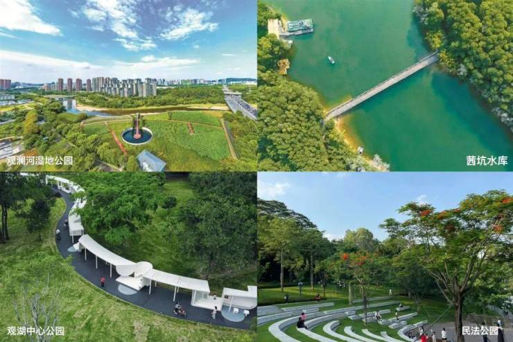 项目周边汇集五大公园,观澜湖生态体育公园(运营)、观澜民法公园、九龙山体育公园(运营)、观澜河湿地公园、长湖公园(规划)及茜坑水库;同时周边拥有充足的医疗配套,呵护业主健康生活。