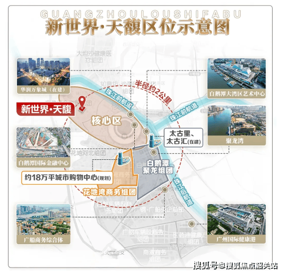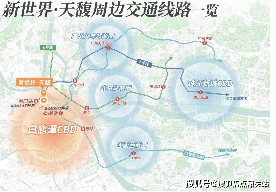 新世界天馥地处荔湾滘口板块,紧邻白鹅潭 CBD,周边在建的华润万象城、滨水街区太古里、太古汇以及 “三馆合一” 等高端商业文化配套,未来生活氛围将更加浓厚。交通方面,项目距离 5 号线滘口站仅 400 米,步行 6 分钟即可到达,12 站直达珠江新城且无需换乘,1 站还可换乘 6 号线与 11 号线,轻松畅达越秀、