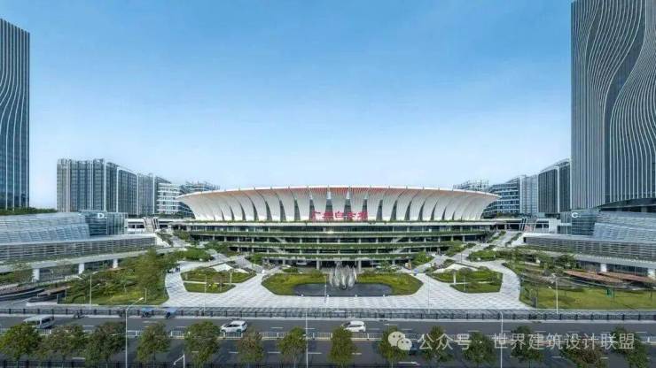 作为广州白云站一体化建设的重要组成部分,粤胜广场总建筑面积22万平方米,包含4栋超高层塔楼,集商务办公、居住、酒店、商业、休闲娱乐于一体。项目由何镜堂院士联合日建设计等团队,以“云山珠水,水润木棉”为理念设计,将岭南特色融入现代交通建筑。