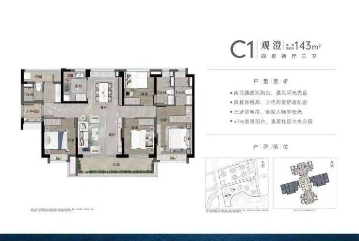 约123㎡南向4房,约143㎡南向4房,约93㎡北向3房。