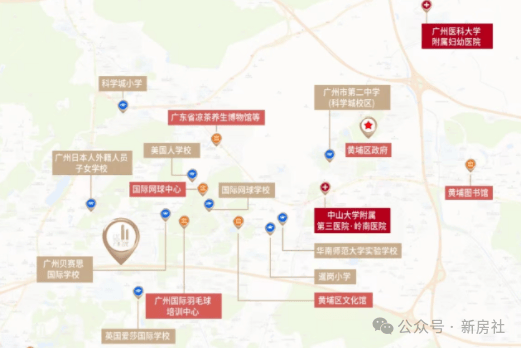 项目3公里范围内集聚市二中、爱莎国际学校、贝赛思国际学校、华南师范大学附属黄埔实验学校(南校区)、美国人学校等多所国际院校,营造双语教学环境,培育与国际接轨的菁英人才。