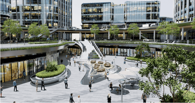 立体交通体系:地下连廊接驳项目商业广场,无缝畅达全城
