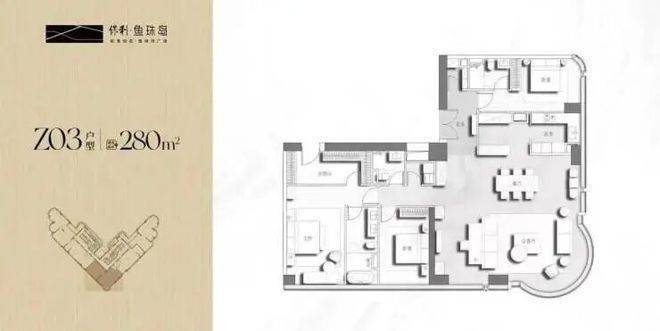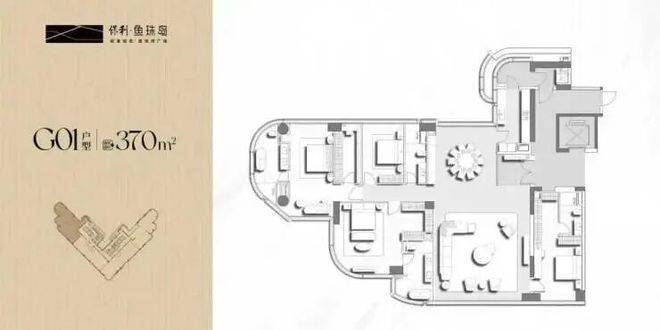 住宅4层起,户型分布,分成低区、中区、高区。 中区是6梯5户设计,户型为210㎡、220㎡、280㎡、340㎡、350㎡。 高区是6梯4户设计,户型是285㎡、330㎡、400㎡。