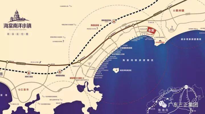 三正•海棠南洋小镇坐落于三亚海棠湾的最后一公里处。海棠湾作为海南建设国际旅游岛的新名片,一直是好地段、高人气、有潜力的代名词,这里不仅汇聚着超2000亿的顶级度假配套设施集群,还有着四通八达的交通道路网,比如海棠湾高铁站(规划中),距离小镇不过10分钟车程,十分给力。