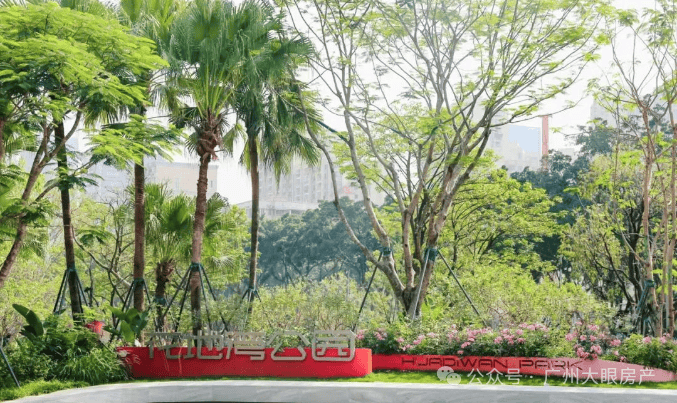 小区出门15米就是约4.5万平的滨水公园,是万科融合1700多年花地文化故事,打造瑧园业主归家必经的第一道动线。