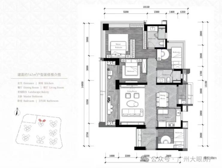 建面约𝟏𝟒𝟏m² 𝟑房+𝟐厅𝟐卫+灵动空间,全明多开间朝南,约𝟏𝟒.𝟔米IMAX采光视野,约𝟖.𝟐米景观大阳台,解放多重生活享受,主卧端厅设计,𝟐𝟕𝟎°全景采光,尽揽滨水美景