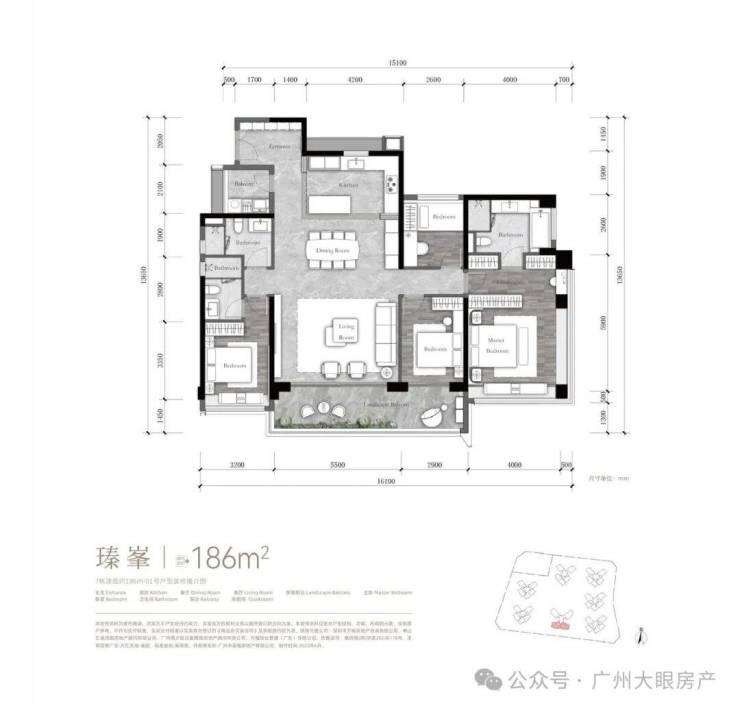 建面约186m² 4房+𝟐厅3卫+灵动空间,#03、04户型~独立单边位视野,约5m²独立序厅,营造步步尊崇领域感,LDKB洄游路线,超 80m²多功能巨幕宽厅,南向双套房卧室设计,漳展高阶人生气度,超 40m²端厅套房主卧,奢享星级酒店卫浴体验