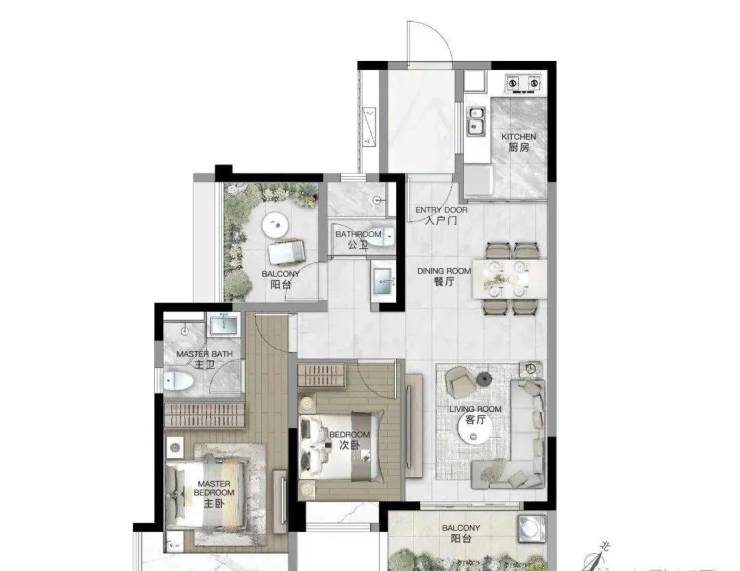 【空间哲学 生活艺术】户型设计秉承"全南向、大面宽、优采光"的理念,98㎡三房采用经典竖厅布局,270°观景飘窗将阳光与风景引入室内;